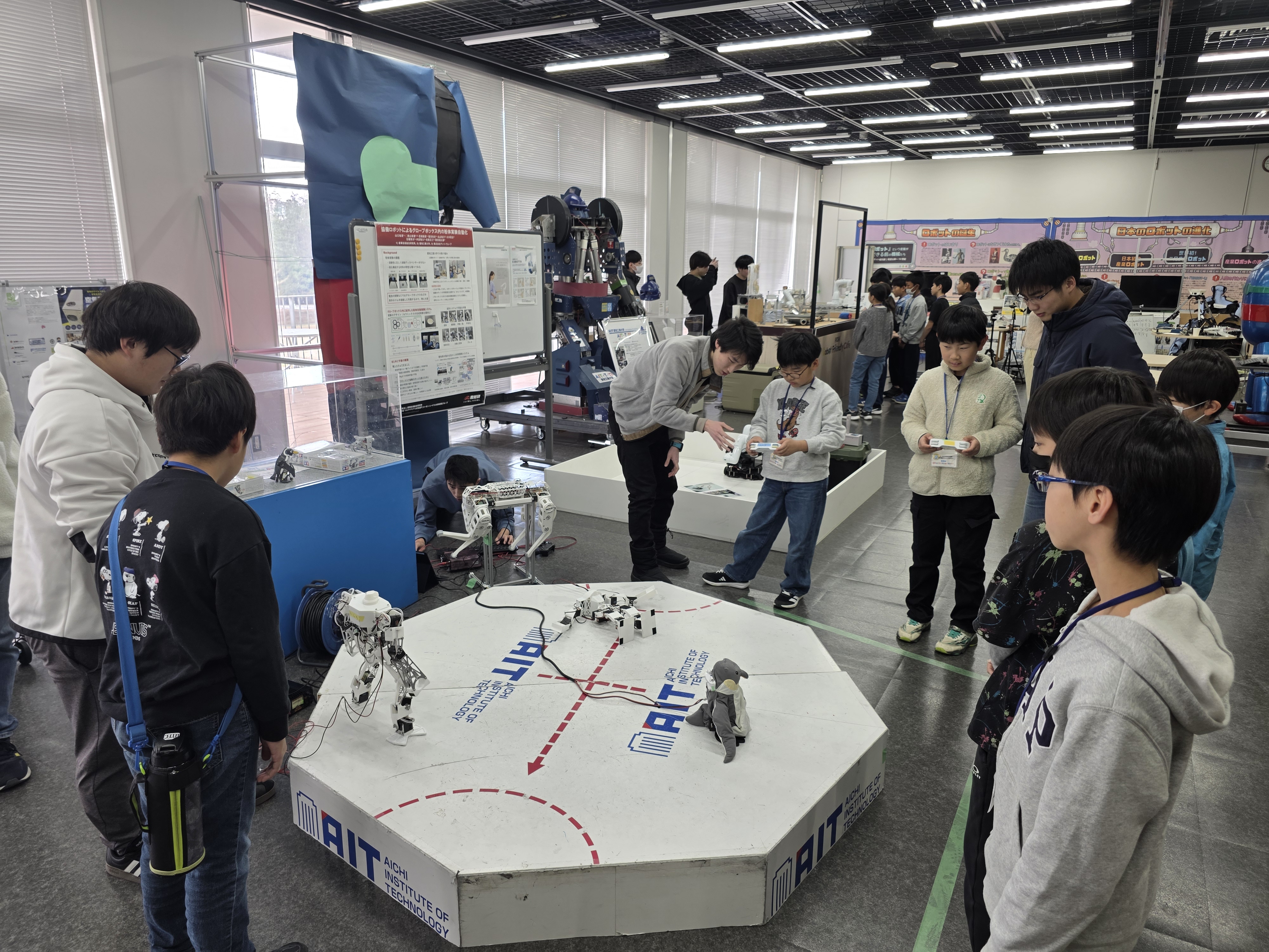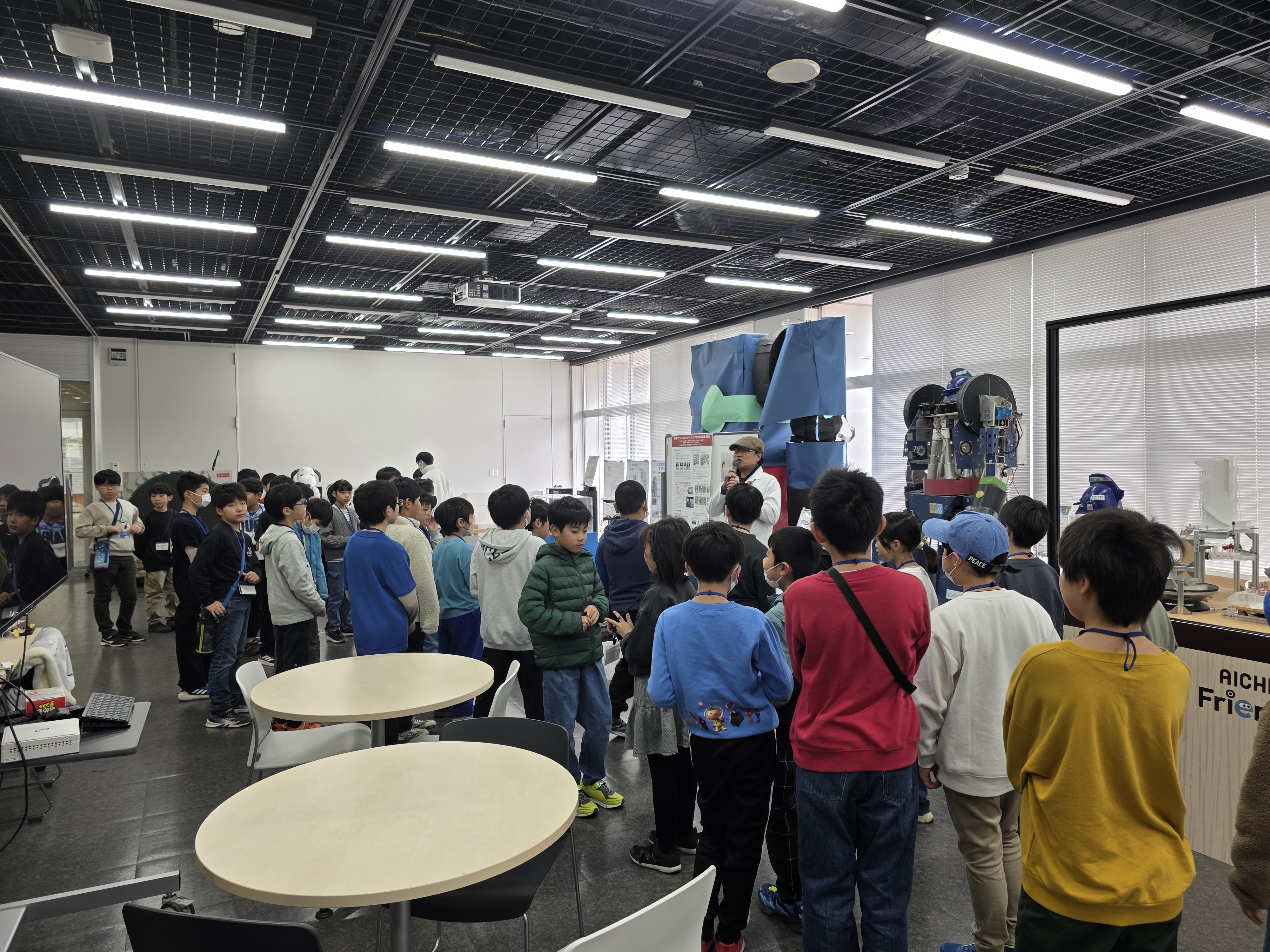 愛知工業大学ロボット研究ミュージアムを4つのグループに分かれて見学。