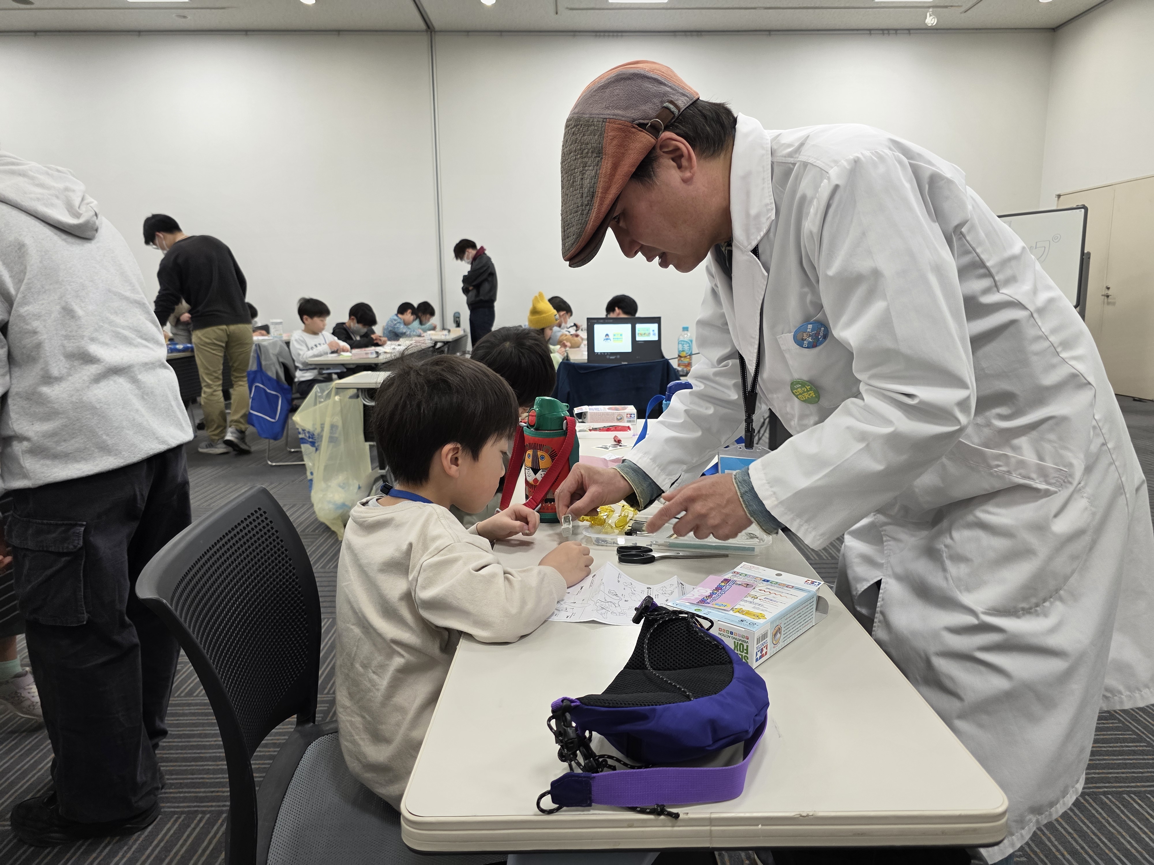 瀬戸蔵でロボ太郎先生(愛知工業大学西山禎泰客員講師)や協力者の皆さんが講師を務め、ロボットについての各種ワークショップを開催!子どもたちはロボット工作やプログラミング、電子部品などについて一生懸命学び、体験していました。